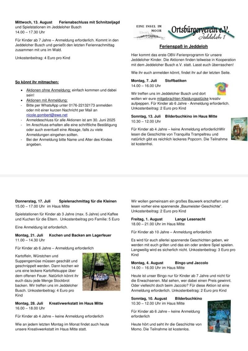 Sommerferien 2025 - Erstes Ferienprogramm für Jeddeloher Kinder