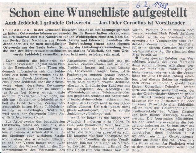 Am 24.05.1968 fand die erste Jahreshauptversammlung des neu gegründeten Ortsbürgervereins statt.